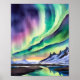 Este impressão de arte apresenta um retrato aquoso das luzes do norte na Islândia.
