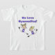 A figura de cabelo loura gymnasts da vara dois da menina em leotards roxos e o texto roxo que nos lê "amam a ginástica!" no camiseta, nas canecas, nas bolsas, nos cartões, nas etiquetas, no chaveiro, e em mais do gymnast da menina.