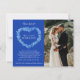 Flor esqueço-me-nãos, desenho de cor da coroa e lavagem com cor de água em texto azul, amarelo, verde e branco. Fizemos isso! Nos casamos, um cartão de casamento com sua própria foto. Personalize com sua própria mensagem e convide para uma festa ou um evento de casamento postado, nomes e sua foto. Ideal enviar a família e amigos para lhes contar as boas notícias e que não se esqueceu delas. Esquece-me original - não desenho de linha de tinta azul e pintura de água e design por Sarah Trett para www.mylittleedenweddings.com apenas no Zazzle.