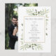 Com delicada folhagem em aquarela, este cartão de anúncio de casamento botânico chic pode ser personalizado com a sua foto especial e detalhes do dia do casamento. Desenhado por Thisisnotme