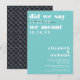 Porque quando se adia um casamento, é importante deixar seus entes queridos saberem que você ainda gostaria que eles comparecessem - apenas em uma data diferente! Ainda é o seu casamento e ainda é formal, então envie um cartão lindo. Este cartão com tipografia minimalista em fundo aqua-turquesa destaca seus detalhes com fontes modernas e frescas. Esses cartões projetados profissionalmente são facilmente personalizáveis. Adicione sua própria redação a este design usando as caixas "Editar este modelo de design" no lado direito do item, ou clique no botão azul "Personalizar" para organizar o texto, alterar as fontes e cores e também adicionar informações ou imagens adicionais a este design. Clique em "Personalizar mais" para abrir as opções de edição completas. Se você precisar de itens coordenados (cartões de agradecimento, etc.), entre em contato comigo para um pedido personalizado. ****Para solicitações personalizadas que precisam da minha ajuda, não coloque este produto no seu carrinho. Em vez disso, envie um e-mail com sua solicitação para lauralise@iyhtvdesigns.com Um link para o seu produto será enviado por e-mail assim que o item estiver disponível. Você pode usar esse link para fazer seu pedido. Por favor, aguarde até 48 horas.
