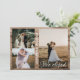 Anuncie seu elogio de casamento aos seus amigos e família por esta carta moderna. O design tem três colagens de fotos na frente com texto branco de caligrafia "nós fugimos" e os nomes das recém-casadas. No verso, você tem uma foto vertical no lado e o casamento detalha o parágrafo do texto no outro lado. Personalize o cartão com suas fotos, detalhes do casamento, data do casamento e nomes.