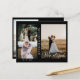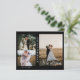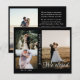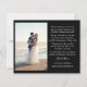Anuncie seu elogio de casamento aos seus amigos e família por esta carta moderna. O design tem três colagens de fotos na frente com texto branco de caligrafia "nós fugimos" e os nomes das recém-casadas. No verso, você tem uma foto vertical no lado e o casamento detalha o parágrafo do texto no outro lado. Personalize o cartão com suas fotos, detalhes do casamento, data do casamento e nomes.