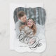 Bold, chic, romântico e elegante são todas as palavras que descrevem este convite de casamento fotográfico. Tem lindas espirais e floresces, tipografia bonito, e uma mensagem que fala sobre o amor do casal.