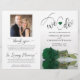 Este belo programa de casamento é moderno e elegante. O design do DIY dobrado apresenta a inscrição moderna no roteiro na primeira leitura "nós fazemos" com os nomes do casal e a data/local do casamento. Há uma foto de uma bela rosa verde esmeralda esmeralda que se reflete numa piscina de água com ondas e ondulações. O dentro tem a mesma flor que um fundo de marca d'água com espaço para os detalhes da cerimônia e do partido noivo. As costas têm sua foto, junto com o espaço para uma nota de agradecimento personalizável, e uma nota memorial para reconhecer os entes queridos perdidos. Sofisticados, na moda, e chic, esses programas adicionarão classe e estilo à sua celebração de casamento. NOTA: esses programas são fornecidos como uma folha plana de papel e precisarão ser dobrados. Há uma variedade de opções de papel, mas a opção do semibrilho é um estoque de cartão leve e será difícil de dobrar de forma limpa, então recomendamos que você escolha uma opção diferente.