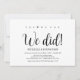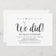 Sim, podemos! Nós fizemos! Este cartão de convite de casamento com tema de fuga romântica rústica em kraft é perfeito para a recepção do seu casamento e festa de celebração pós-casamento. Adicione seus detalhes em fonte / letra preta correspondente.