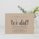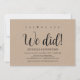 Sim, nós podemos! Nós fizemos! Este convite de casamento com tema rústico kraft é perfeito para a recepção do seu casamento e festa de celebração pós-casamento. Adicione seus detalhes em fonte / letra preta correspondente.