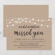 Lindas Luzes de Corda de Fazenda Rústica Moderna, fonte Script preta em Fundo Kraft Marrom, Anúncio de Casamento às Escondidas, cartão de convite (Nós fizemos isso e sentimos sua falta). Isso é perfeito para a recepção do seu casamento e festa de celebração pós-casamento. Adicione seus detalhes na fonte / letra correspondente.
