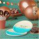 Costa do oceano, água azul-turquesa, praia arenosa, pratos de papel perfeitos para um casamento com tema de praia ou chá de bebê. O texto diz "Nós Fizemos" e você pode editar a data.