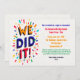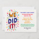 Um convite colorido, grunhido, com fonte sobredimensionada dizendo "NÓS FIZEMOS". Mostrado como um convite para bailes de formatura, é perfeito para festas de formatura e outras celebrações de marco. (Imagem de Freepik). O cartão é fácil de personalizar com o seu texto, fonte e cor da fonte. Não exatamente o que você está procurando? Todos os nossos produtos podem ser personalizados para atender às suas necessidades sem custos adicionais. Basta entrar em contato conosco heartfelthelper@gmail.com. Coordenando produtos disponíveis a seu pedido sem custos adicionais.