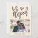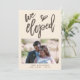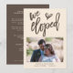 Deixe seus amigos e familiares saberem sobre sua fuga e convide-os para se juntarem a você para uma celebração pós-casamento também! O elegante roteiro We Eloped está na frente em marrom, abaixo do qual você pode adicionar sua foto favorita do casamento, e personalizar seus nomes, data e local da cerimônia em um fundo creme. No verso, personalize facilmente com o seu anúncio e detalhes do convite, que estão em um fundo marrom. As cores do verso e do texto podem ser alteradas para melhor se adequar à paleta de cores do seu casamento, se desejar, através da opção Personalizar Mais.