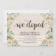 Nós fugimos, cartão de convite para recepção de casamento de fuga. Este cartão de convite temático de Primavera Neutra é perfeito para a sua recepção / festa de celebração de casamento. Adicione seus detalhes em fonte / letra preta correspondente.