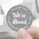 Adicione um toque de finalização de na moda à movimentação de envelopes de lançamento com estes rótulos de endereço de retorno de nós movemos / movi-me. Todo texto pode ser personalizado. Design moderno estilo de fazenda apresenta elegante caligrafia de escrita manual e simples tipografia minimalista em círculo. Estes selos de envelope são uma forma moderna e chique de apresentar amigos e familiares à sua nova casa. Perfeito para trocar cartões de endereço e convites para casa.