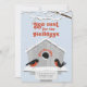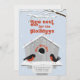Diga aos seus amigos e familiares que você tem uma nova casa! Estes cartões de anúncio comoventes de feriados de 5 x 7", brancos, apresentam dois robins modernos que se encaram uns aos outros em cima da sua varanda em frente à sua casinha de pássaros com "lar doce lar" perto da porta da casinha. A neve cai sobre a casinha coberta de pássaros com um fundo azul-céu. A saudação conta a história, "Novo Ninho para os Feriados." Basta adicionar seu nome e novo endereço.