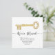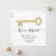 Avise seus amigos e família sobre seu novo endereço com este cartão postal de anúncio de chave rustica. Este modelo apresenta uma chave de inspiração de vintage dourada. Texto totalmente personalizável, muito simples de editar com seus detalhes pessoais.