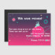 Este astronauta bonitinho na ilustração espacial em roxo e rosa é o pano de fundo perfeito para o seu anúncio em movimento. Avise seus amigos e familiares que sua nova casa está fora deste mundo e estenda um convite ao mesmo tempo. Adicione os seus detalhes ao cartão magnético e você está pronto.