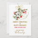 Anúncio de mudança de Natal com saudações de Feliz Natal e felizes festas com ilustração de visco em aquarela. Personalize com a foto da sua família e mensagem no verso.