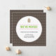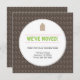 Mudamos o anúncio com um fundo de damasco castanho e um círculo branco simples para o seu novo endereço.