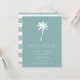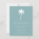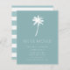 Anúncio tropical em movimento com palmeira em fundo azul com uma faixa nova e moderna.