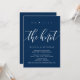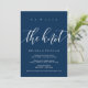 Linda Caligrafia Moderna Simples Azul Marinho, Anúncio de Casamento Fuga, cartão de convite (Nós nos casamos). Isto é perfeito para a sua recepção de casamento e festa de celebração pós-casamento. Adicione seus detalhes na fonte / letra correspondente.