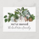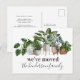 Cartões postais de anúncio de mudança modernos com folhagens botânicas em aquarela, plantas caseiras e detalhes do seu novo endereço no verso.
