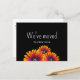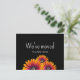 Nós nos mudamos cartão postal de anúncio de mudança floral, com um design de margaridas boho em um fundo preto. Com letras personalizáveis, você adiciona suas próprias informações. Ótimo para informar os entes queridos sobre sua nova casa.