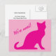 Nós mudamos os cartões postais de design de gato rosa fofo. Eu mudei os cartões de mudança para o novo endereço. Cartões postais personalizados de mudança para nova casa. Texto de mudança personalizado como Nós mudamos! Adicione seu novo endereço no verso. Cartões modernos de gatinho fofo para nova casa ou local de negócios. Mensagem e cores personalizáveis. Também ótimo para novo animal de estimação.