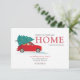 Não há melhor altura para enviar as saudações da sua época e as notícias da sua nova casa com este moderno carro vermelho com uma árvore de Natal no telhado para que eles saibam que você está passando as Férias em uma nova casa. O texto neste modelo é simples de personalizar clicando no botão "Personalizar" acima.