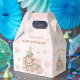 Caixa de chá de fraldas de Natal. Apresenta ursinho de bebê fofo, árvore de Natal e presentes com falso falso falso floco de neve ouro e estrelas, tudo em rosa, bege e verde. Personalize facilmente todo o texto. - Kate Eden Art