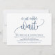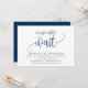 Este cartão de convite com design de caligrafia moderna (nós simplesmente não conseguimos esperar) é perfeito para a celebração do seu casamento às escondidas / festa de anúncio. Adicione seus detalhes em fonte / letra azul-marinho correspondente.