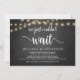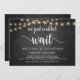 Nós simplesmente não podíamos esperar, Anúncio de Casamento Fuga / Convite de casamento, em quadro de giz de fazenda rústica, design de Luzes de Corda. Isso é perfeito para o seu casamento e festa de celebração pós-casamento. Adicione seus detalhes em fonte / letra correspondente.