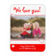 Imagem fotográfica com as palavras "Nós te amamos". Este item tem uma foto que deve ser trocada por você. <i>Fotografia © Storytree Studios, Stanford, CA</i>