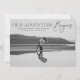 Compartilhe as notícias do seu noivado em estilo com estes anúncios do noivado moderno! O anúncio apresenta a frase "Nossa aventura começa" em letras negras de tendência sobre a sua foto horizontal de noivado. Personalize a frente do anúncio adicionando seus nomes e detalhes adicionais. O cartão se reverte para exibir uma foto adicional com espaço para o site do seu casamento ou outras informações.