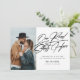 Anúncio de noivado com foto moderno e minimalista. O design apresenta uma única foto, tipografia ''nossa estrada começa aqui'', data do noivado e nomes. Perfeito para anunciar sua grande notícia.