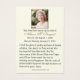 Esta bela design de oração memorial mostra a Nossa Senhora da Graça dentro de um arco de rosa de cor aquática macia, fazer-a um tributo tenebroso a uma alma carinhosa e abandonada. O verso inclui uma oração sagrada de memória e espaço para uma foto, nome e datas. Ideal para funerais católicos, acordares e massas memoriais. Uma emocionante manutenção para que a família e os amigos apreciem e rezem com a amável memória dos fiéis falecidos.