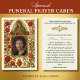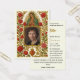 Memória fúnebre católica de língua espanhola honrando Nossa Senhora de Guadalupe. Apresenta um design floral gravado a ouro com rosas, milagros e raios vermelhos e cor-de-rosa em torno de uma foto carinhosa. O inverso inclui um verso reconfortante das Escrituras (Mateus 5:4), datas de nascimento e de passagem, e uma oração sincera à Bênção Virgem María de Guadalupe. Um belo tributo inundado na fé e na tradição.