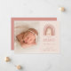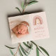 Um belo e sincero anúncio de nascimento para o seu bebê arco-íris apresenta um arco-íris desenhado à mão em cores de tom de terra inspiradas em boho, com o nome do "nosso arco-íris" e o nome do bebê, data de nascimento e estatísticas de natalidade por baixo. Personalize com uma foto em cada lado e adicione uma mensagem pessoal ao verso. Perfeito para os pequenos, bem-vindos depois de uma perda.