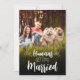 Nossos humanos vão se casar com o convite para casamento de fotos de cachorro. Inclua seu cachorro ou outro animal de estimação em sua preparação de casamento com este convite de casamento bonito e informal. A frente deste cartão de convite é facilmente personalizável com uma de suas fotos favoritas, e apresenta a legenda "nossos humanos estão se casando". A parte de trás do cartão é personalizável com seus nomes, data do casamento, hora e local. Entre em contato conosco para obter assistência para o design através do Zazzle Chat ou envie um email para stephanyanddany@gmail.com. Responderemos dentro de 12 horas.