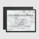 O texto da tela negra diz "Nosso escritório mudou". Você pode personalizar seu anúncio móvel com o nome, o novo endereço e o número de telefone da sua empresa. O anúncio em movimento tem um falso design de mármore branco e uma borda negra.