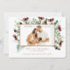 Cartão de Natal De Foto Branco Em Segundo Plano. Folhagem, bagas, eucalipto, alfinetes, nomes. Nosso Natal de 1rua como uma Família de 3. Feliz Natal. Cantos Arredondados. Nome da família no verso.