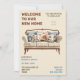 Celebre sua nova casa com um encantador convite de festas de lar, com um sofá de cor castanho e creme acolchoado com travesseiros decorativos castanho-claro e azuis. Perfeito por convidar amigos e família a compartilhar a alegria de seu novo espaço, este design elegante dá o tom para uma reunião de na moda. Faça o download do seu modelo de convite agora e prepare-se para criar memórias duradouras em sua nova casa!