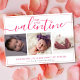 Bem-vindos ao seu doce namorados para a sua família e amigos mais próximos com este simples e adorável cartão de anúncio de nascimento de namorados rosa. Personalize com 3 fotos do seu recém-nascido e adicione seu nome e detalhes para uma bela aparência pessoal.