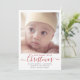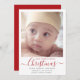Um simples design minimalista para este cartão de natação de feriado. A design apresenta uma grande foto com a nossa Feliz Pequeno Natal em tipografia verde. Personalize com o nome, data de nascimento, estatísticas de nascimento e nomes dos pais. O reverso é coordenado em vermelho