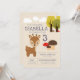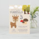 Um convite de festas aniversário de criança bonito mostrando um adorável veado ou falso. Outros elementos de design incluem nuvens, árvores e cogumelos florestais. Este convite de festas é ideal para crianças que amam animais ou ao ar livre.