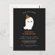 Celebre o aniversário do seu pequeno namorado com este cartão postal de aniversário do Dia das Bruxas. Ele mostra uma ilustração de um fantasma adorável vestindo um chapéu de festa. O convite tem um esquema de cores preto, branco e laranja, e a parte traseira do cartão postal pode ser usada para mais detalhes do partido ou para uma mensagem pessoal curta.