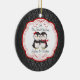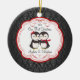Nosso costume que datado original nossos primeiros enfeites de natal caracterizam um pinguim bonito no casal do amor ajustou-se em um fundo preto do damasco! Personalize com sua informação e data e você são todos ajustam-se para ir! Presente datado maravilhoso da lembrança para um primeiro Natal dos casais e uma grande adição a você coleção dos enfeites de natal.