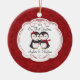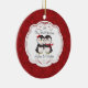 Nosso costume que datado original nossos primeiros enfeites de natal caracterizam um pinguim bonito no casal do amor ajustou-se em um fundo vermelho do damasco! Personalize com sua informação e data e você são todos ajustam-se para ir! Presente datado maravilhoso da lembrança para um primeiro Natal dos casais e uma grande adição a você coleção dos enfeites de natal.