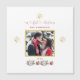 Nosso Primeiro design de Foto Floral Floco de Neve de Natal. Apresenta a caligrafia moderna de "nosso primeiro natal", vermelho-d-água, flores brancas, folhas, bagas, bolas de natal, falso falso falso floco de neve de ouro. É fácil adicionar sua foto e informações. Mais ideias para presentes na minha coleção de presentes de Natal.