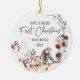 Se você está procurando presentes únicos para casais e recém-casados nosso personalizado ornamento de Primeiro Natal Casado com nome e ano é a escolha perfeita. Ele apresenta um design único de aquarela com flores e animais de inverno acompanhados por um fazer personalizado, um presente personalizado de excelente.
