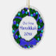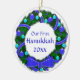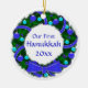 Um simples e bonito com as decorações azuis e verdes, apropriadas para seu "Hanukkah Bush"! Modelos parte dianteira e parte traseira, com "nosso primeiro Hanukkah (ano) na parte dianteira e no ano na parte traseira.